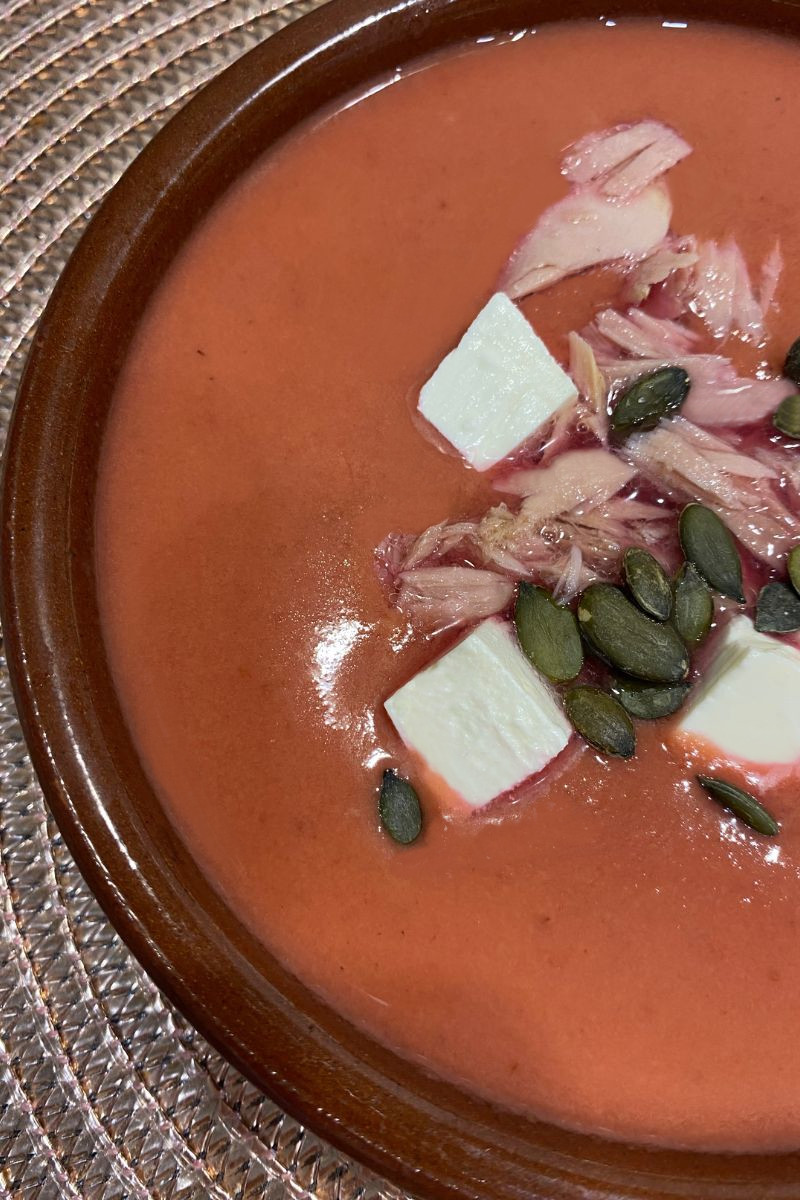 Salmorejo o sopa fría de remolacha saludable sin gluten