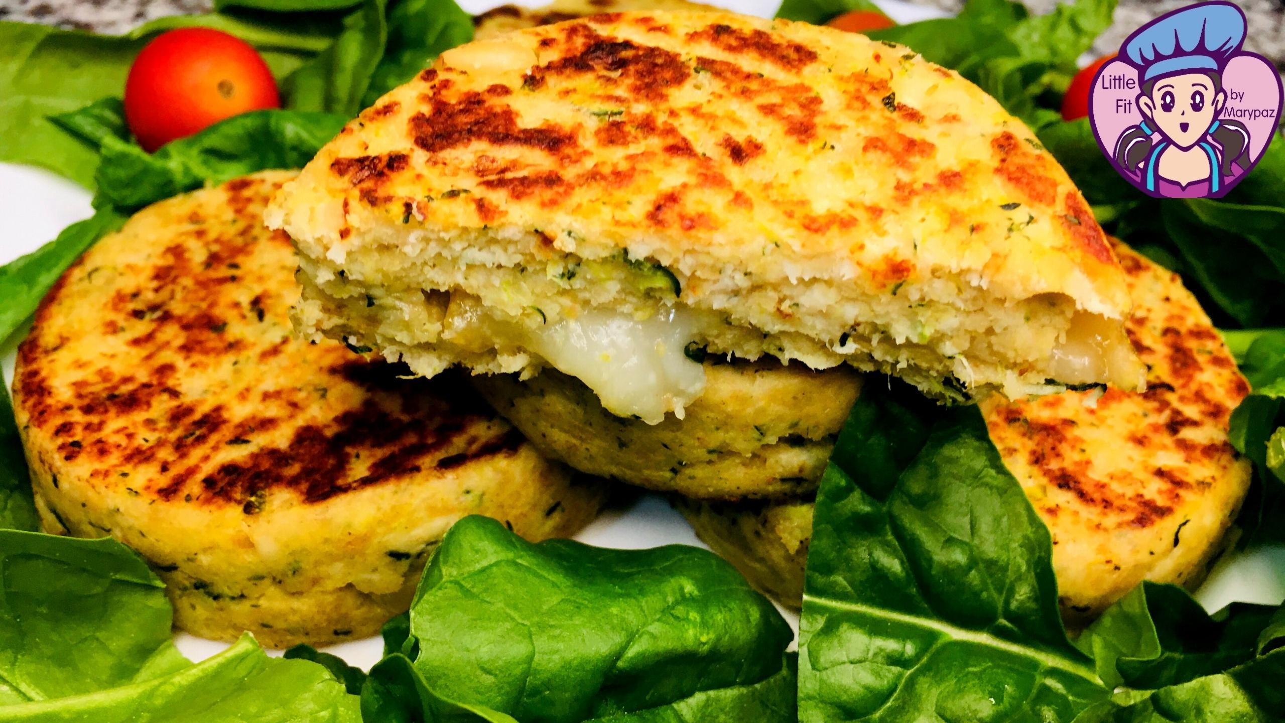 Hamburguesas de pollo y calabacín rellenas de queso